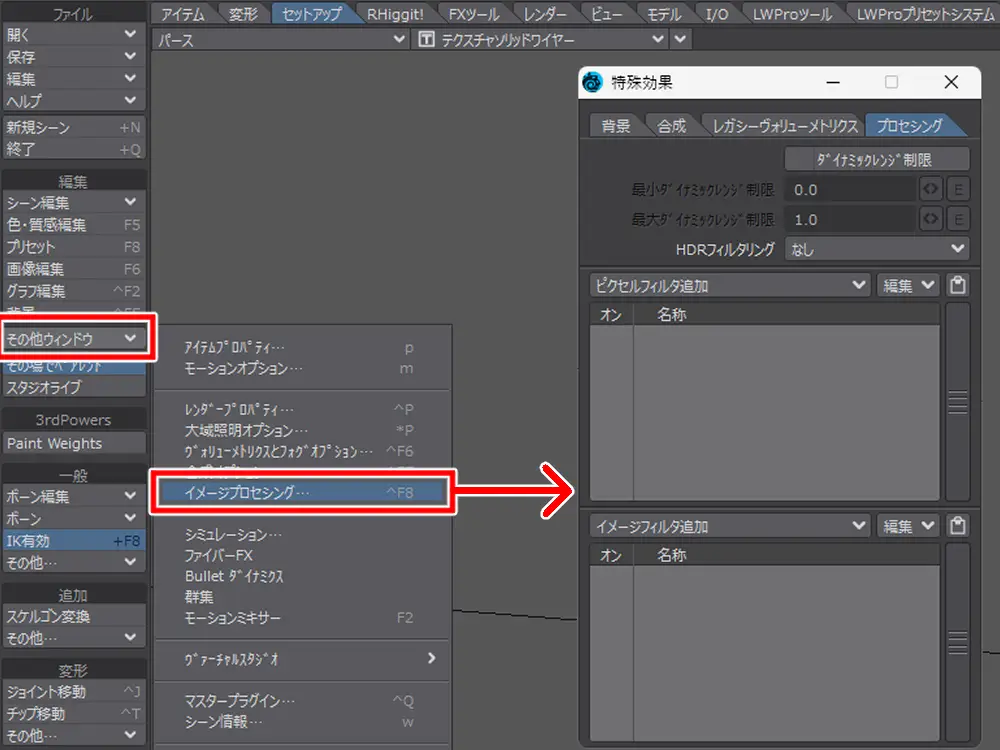 なんと「その他ウィンドウ」の「イメージプロセシング」にあります