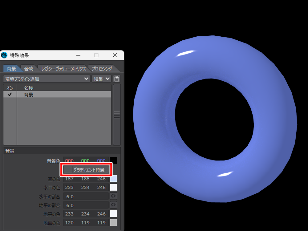 そこで特殊効果パネルにある背景の設定を少し変えます