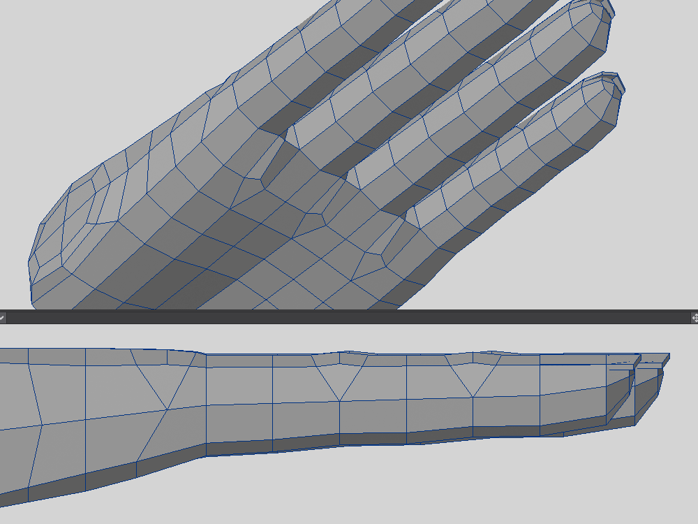 作り始めの頃、手順を減らすために手のひらから直接指を生やしましたが、これが想像以上に難しかったです