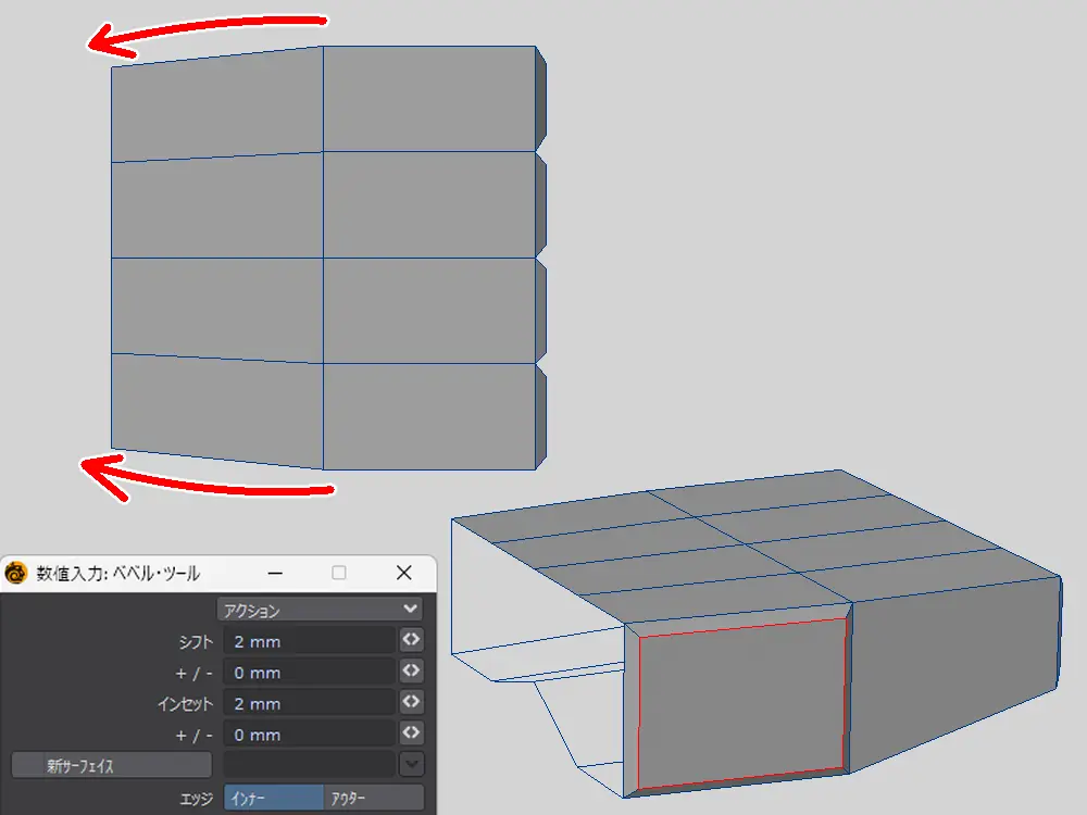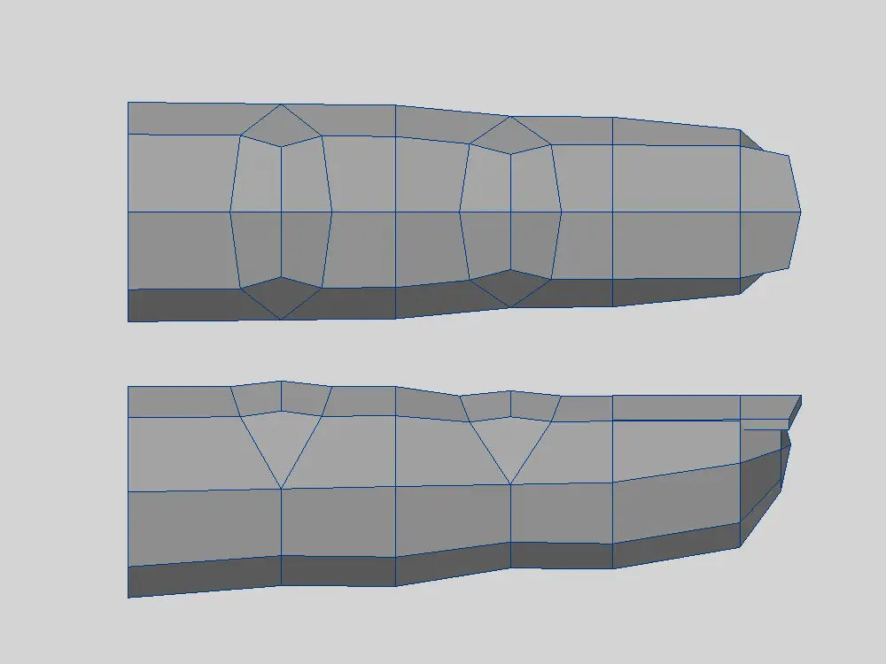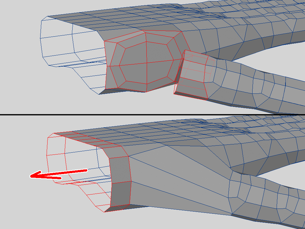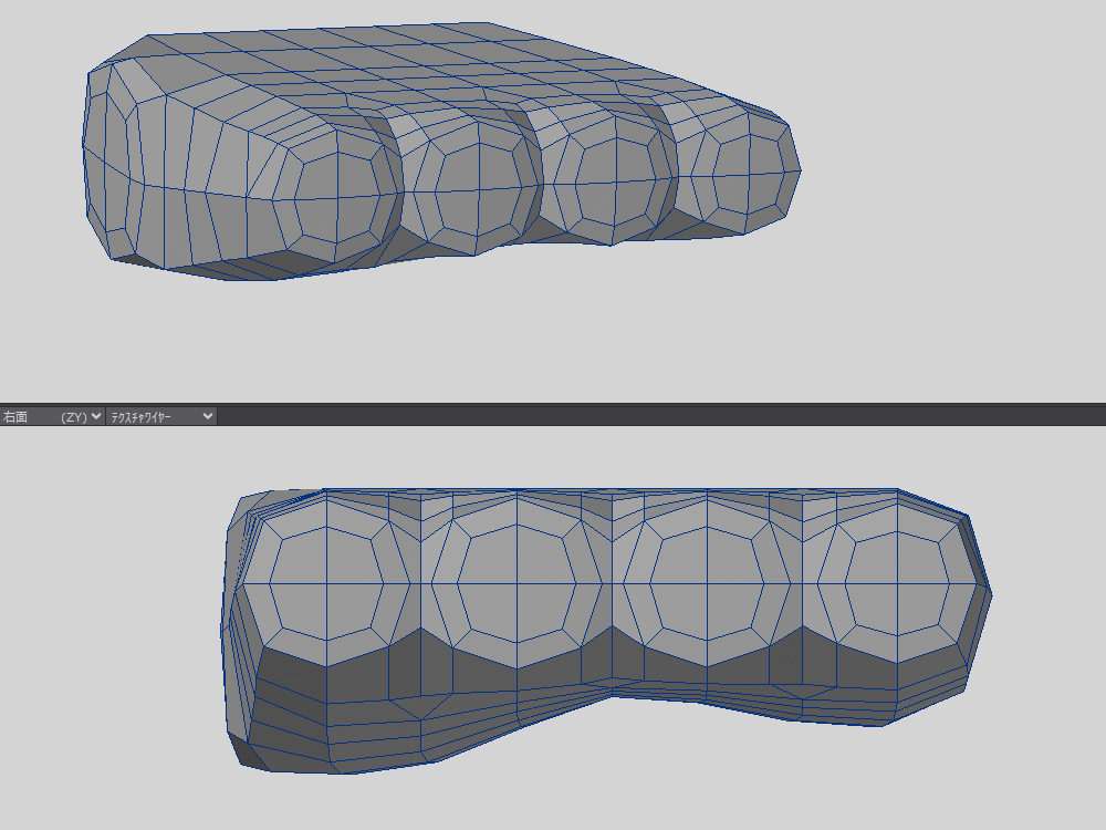 これでは後に繋げる腕とのポイント数と合わないので、ポリゴンの流れを変更します