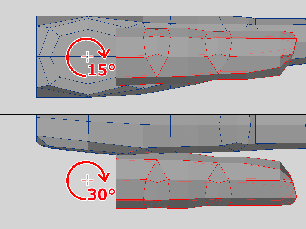 メカ系なら四角でも良いかなと思いましたが、調整のしやすさや曲げ具合の良さから円形部位の最少角数は八角形でいくことにしました