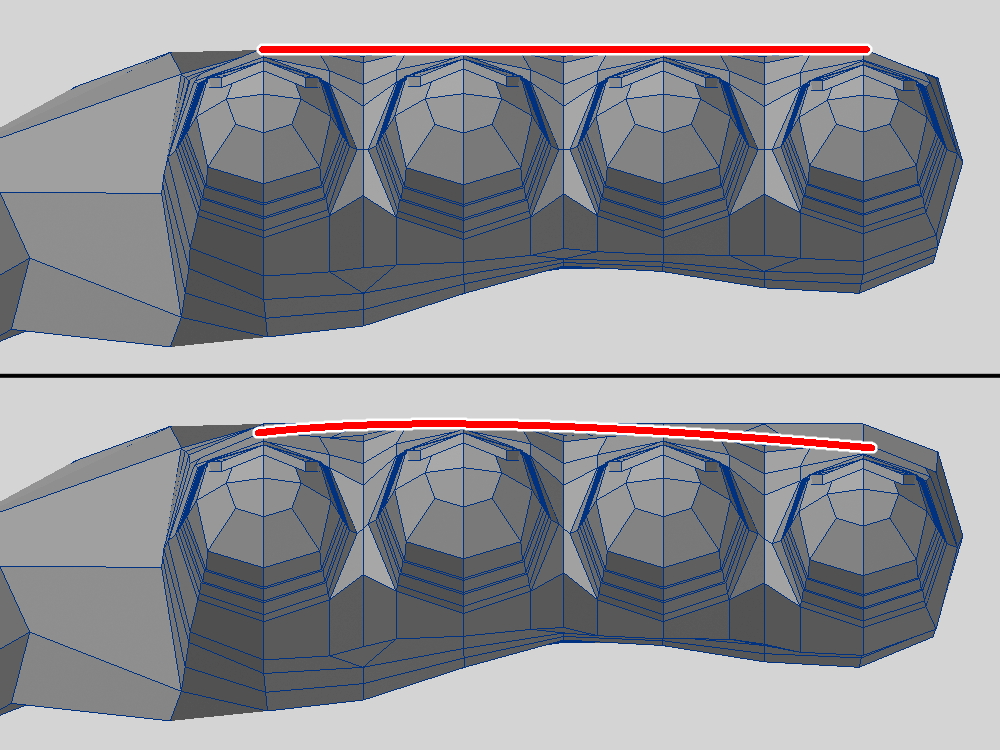 関節位置のエッジの高さをちょっとだけ上げて、指の肉っぽい曲線を出します