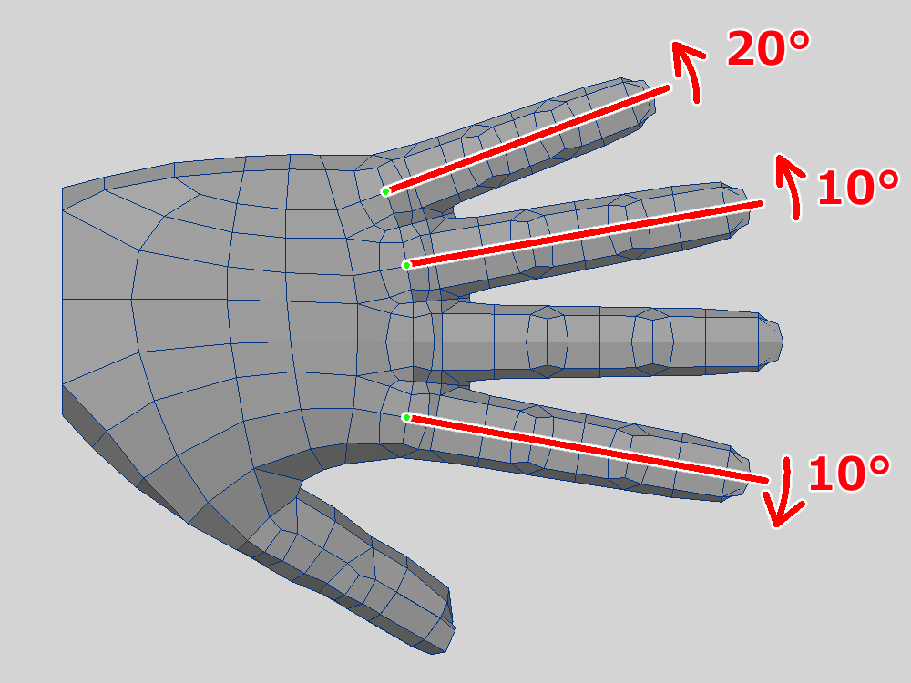 指が水平にまっすぐ並んでいるとおかしいので、アーチ状にちょっとずつ高さを変更