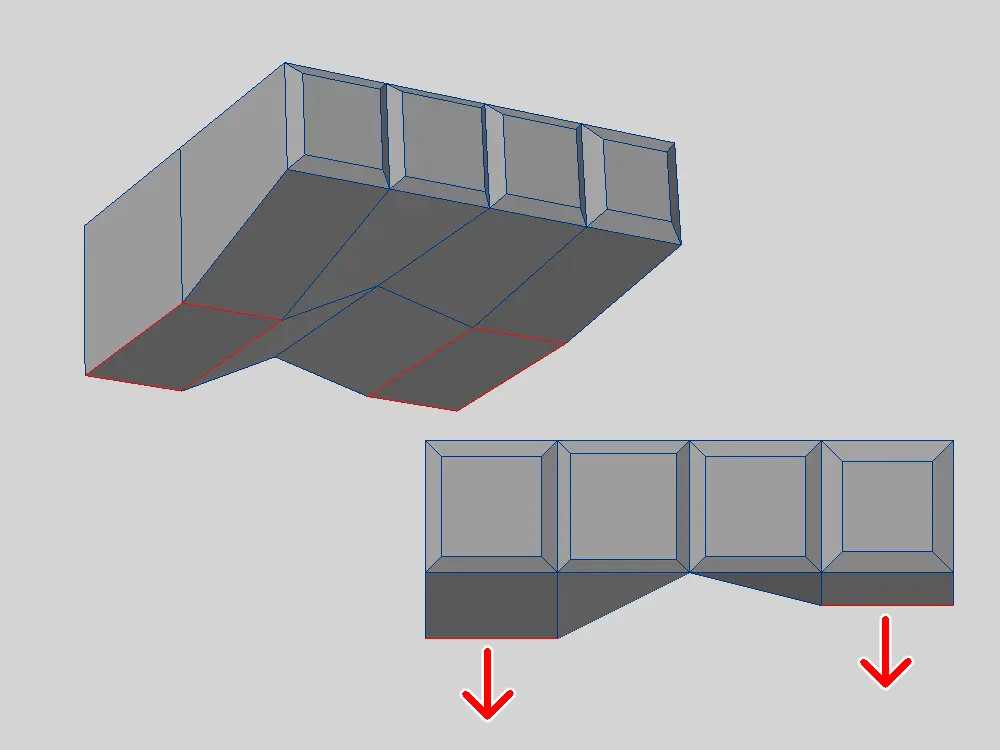 一つのポイントに対してエッジが複数密集しているものを「ポール」呼ぶそうですが、これが 6 本以上密集しないようにします