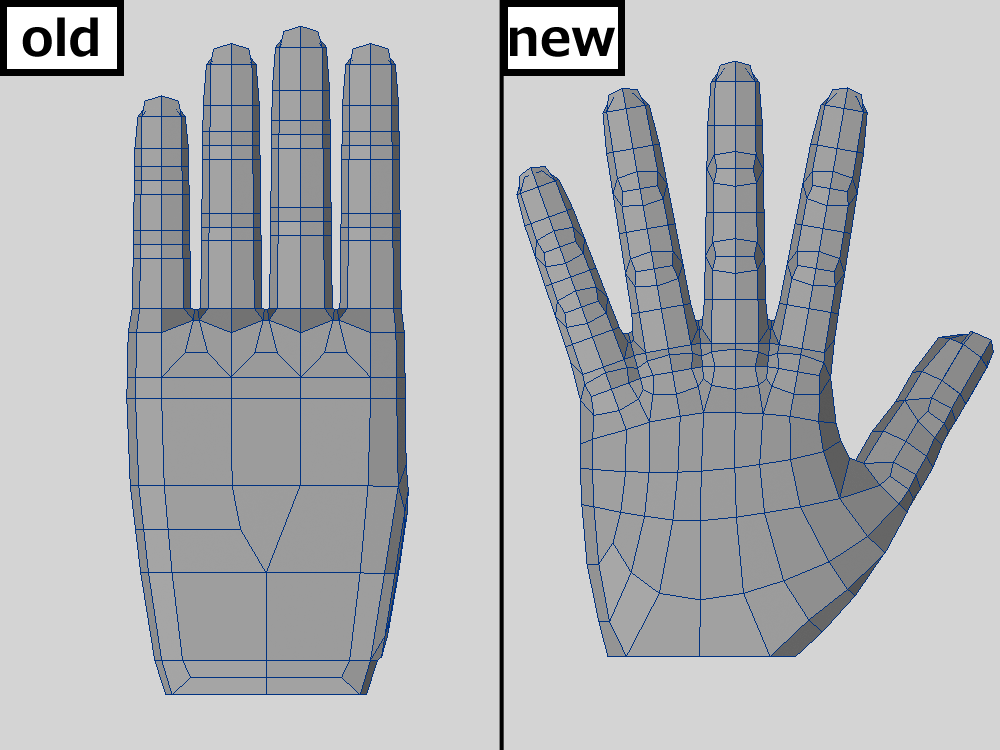 これは親指を別で作ろう作戦の初期頃の手と、今回ここに乗せた手の比較です
