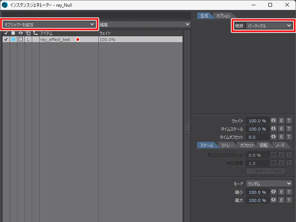 - インスタンスの生成の種類はパーティクル